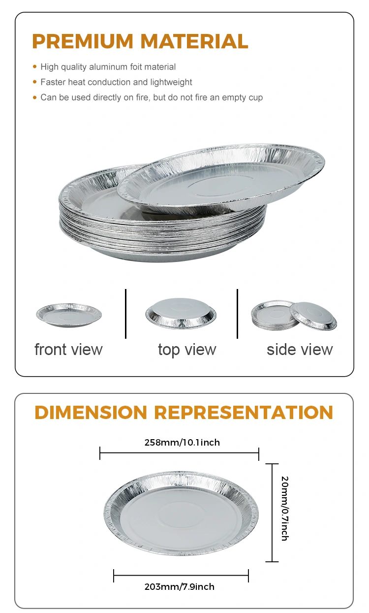Зовнішній пікнік для тих, хто любить заходи на свіжому повітрі, 10 -дюймовий контейнер для алюмінієвої фольги срібла - це ідеальний вибір для них. Мало того, що він може бути використаний для утримання їжі, але й може бути відкинуто безпосередньо (виберіть екологічне лікування) без необхідності носити брудні посуд додому, що є і гігієнічним, і екологічно чистим.