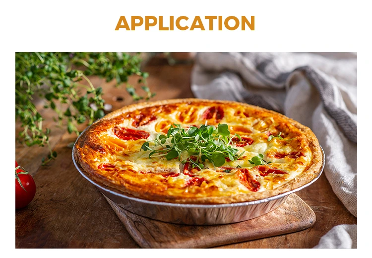Алюмінієва фольга Yunchu пропонує 10 -дюймові контейнери з алюмінієвої фольги з алюмінієвою фольгою з номером 13110. Продукт має верхній діаметр 258 мм (близько 10,1 дюйма), нижній діаметр 203 мм (близько 7,9 дюйма) та висоту 20 мм (близько 0,7 дюйма). Маючи потужність приблизно 695 мл (близько 24,5 унцій), вона підходить для випічки піци без приклеювання, легко випустити з форми і не має запаху. Крім того, його конструкція піднятого краю запобігає розливу інгредієнтів та збільшує практичність. Ми також можемо надавати послуги з налаштування логотипів, які допоможуть вам поглибити враження ваших клієнтів та підвищити поінформованість про бренд.