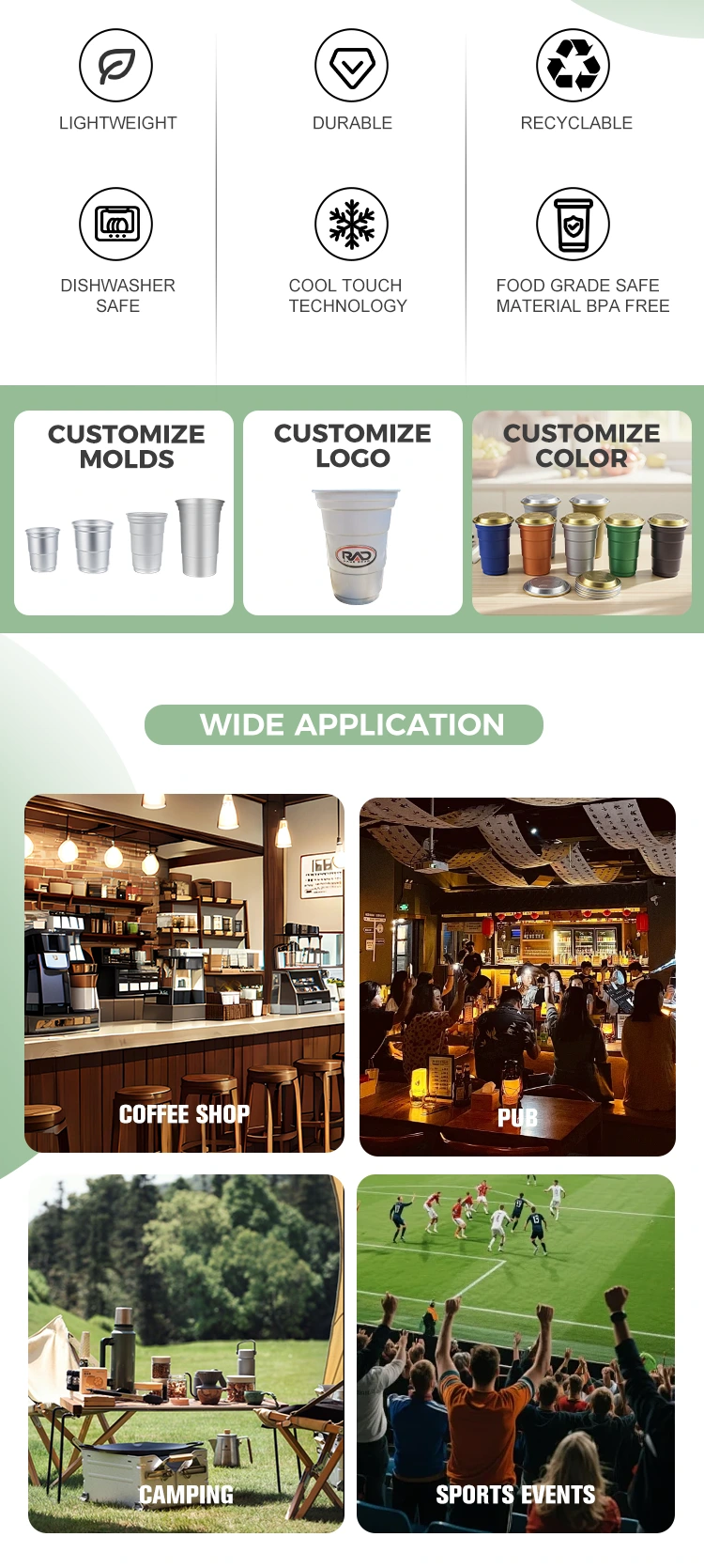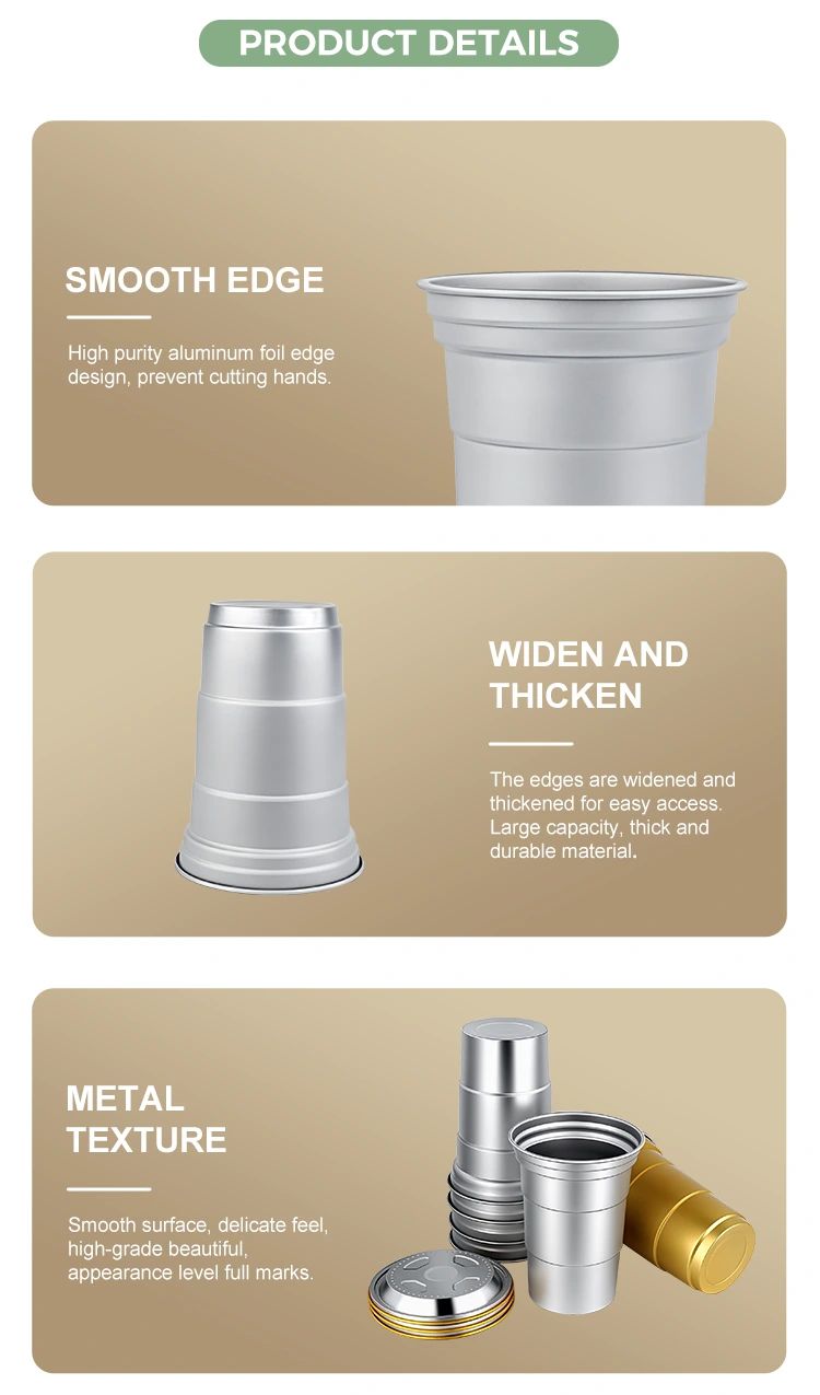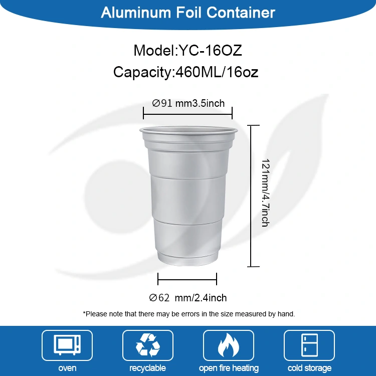 Цю одноразову чашку для пива та кави з алюмінієвої фольги на замовлення ємністю 16 унцій можна поставити безпосередньо в холодильник для охолодження. Під час зберігання холодних напоїв теплопровідність алюмінієвого матеріалу допомагає підтримувати холодну температуру.