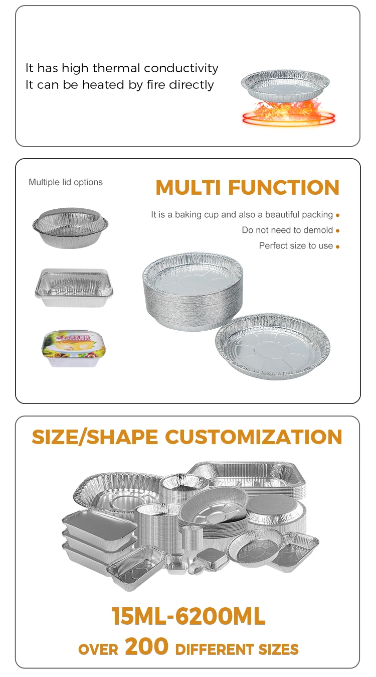 Трапеція -форма цього продукту не тільки додає візуальної краси, але й дуже легко укладати та зберігати, заощаджуючи місце для зберігання. У той же час, ця конструкція полегшує доступ до предметів, і нелегко ковзати навіть під час польових заходів, що значно підвищує безпеку використання. Крім того, 7-9 дюймів контейнери з алюмінієвої фольги з алюмінієвої фольги мають легкий дизайн, що робить його ідеальним для відкритих пікніків. Ви можете взяти його з собою в будь -який час, де завгодно, будь то вдома чи на відкритому повітрі, що робить його легким для будь -якого випадку.