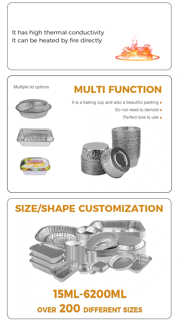 Алюмінієва фольговала алюмінієву фольгу для випічки торта Срібна алюмінієва фольга з їжею Пемія та формування двома, багаторазового алюмінієвого контейнера з алюмінієвої фольги, для барбекю, широкого спектру використання, може бути нагріти над відкритим полум'ям і стійким до випічки, замість горщиків, випічки, будинки, харчові фабрик, не маючи наміру, не маючи на себе, не маючи цвяхів Складені та форми, вигадливе використання, одна цвілі багатоцільова, пудинг, пиріг, яєчні пироги, яйця з пару, барбекю тощо, анти-панель і легкий у демольному, не легко спалювати, гладкий всередині може бути випущена світла щіпка, відкрита опір опалення полум'я, а не зламати, це може запобігти невеликим закускам та шоколадам з ковзання, а також може дотримуватися стійкості до ковзання та різноманітності.