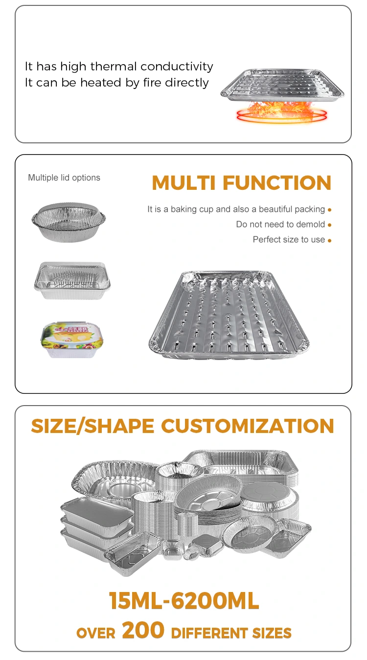 Постачальник алюмінієвої фольги з алюмінієвою фольгою на одинразовий гриль підходить для грилю на свіжому повітрі та в приміщенні, цей лоток для випічки має унікальний дизайн отвору, не потрібно турбуватися про проблеми з олійним димом. Конструкція отворів дозволяє швидко провести тепло і більш рівномірне опалення, уникаючи місцевого перегріву традиційних лотків для випічки. Будь то кемпінг у пустелі чи сімейні збори, ця решітка забезпечує чисте, здорове середовище для вашого барбекю. Алюмінієва фольга Yunchu Aluminium Poil виготовляється з контактних матеріалів харчових продуктів для забезпечення гігієни та безпеки під час процесу барбекю. Високоякісний матеріал з алюмінієвої фольги не тільки довговічний, але також має гладку поверхню і ніякого запаху, що дозволяє насолоджуватися їжею, не турбуючись про будь-які ризики для здоров'я. Ця випічка була розроблена з усіма деталями, від зовнішності до практичності.