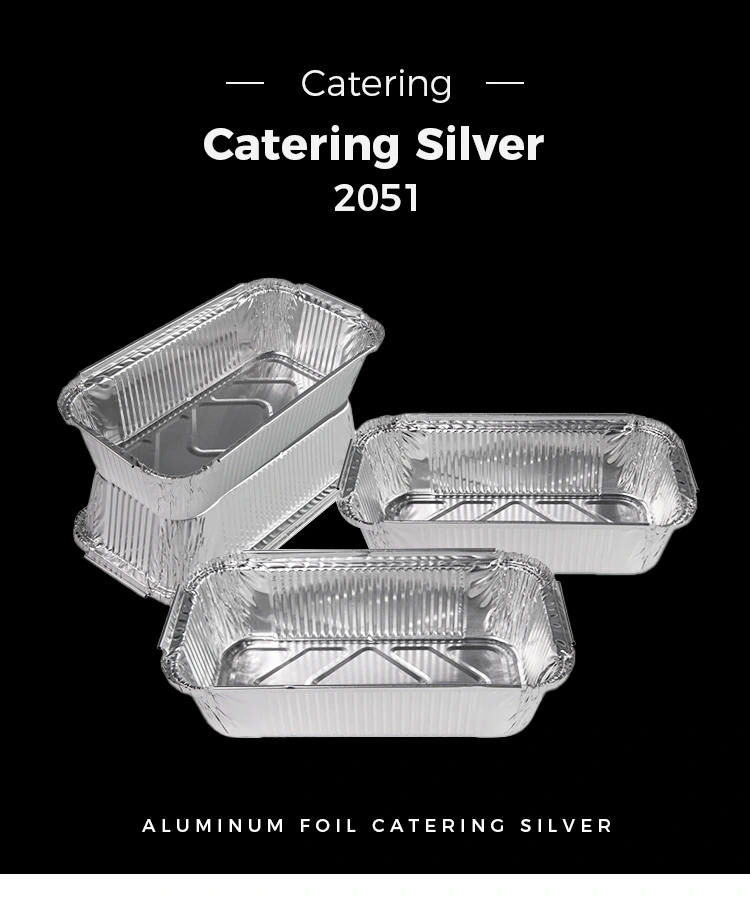 • Одноразові прямокутні контейнери з алюмінієвою фольгою сріблаОдноразові прямокутні контейнери з алюмінієвою фольгою срібла