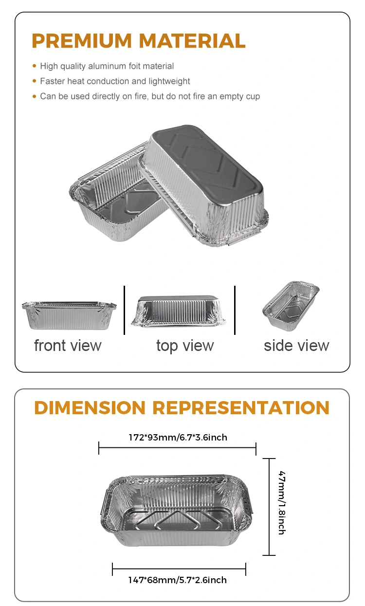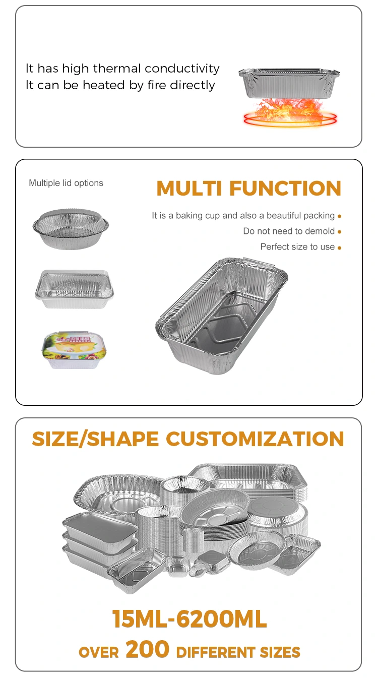 Одноразові прямокутні контейнери для алюмінієвої фольги з алюмінієвої фольги з постачальника алюмінієвої фольги Юнгу - це універсальний кухонний інструмент, придатний для різних методів приготування, таких як гриль, гарячий горщик, гратін, упаковка для виїзду тощо. Цей контейнер досить компактний, щоб відповідати різноманітним горщикам та обладнанню, і поставляється в різних розмірах, щоб задовольнити потреби різних шашликів з відкритим полум'ям. Його можна використовувати для виготовлення різних харчових продуктів, таких як повітряні фритюрниці та інші засоби обладнання, теплота та стійкість до масла, легка випічка.