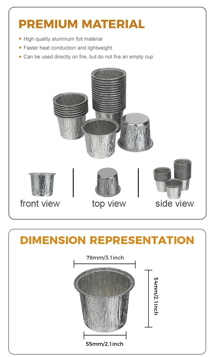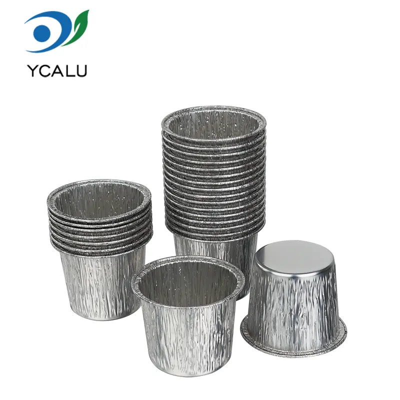 Одноразовий круглий сріблястий контейнер із алюмінієвої фольги від виробника Yunchu із круглої чашки для торта виготовлено з харчової алюмінієвої фольги високого ступеня чистоти. Він пройшов сувору перевірку якості, не має запаху та шкідливих добавок. Прямий контакт з інгредієнтами забезпечує більше душевного спокою, захищаючи кожен шматочок солодкості та здоров’я. Процес потовщення алюмінієвої фольги створює міцний корпус чашки, який нелегко деформувати або зламати. Його можна використовувати для різноманітних тіст для тортів, мусу, пудингу та інших інгредієнтів.