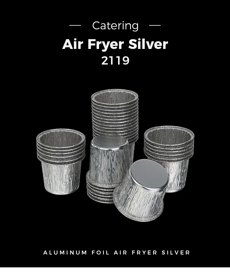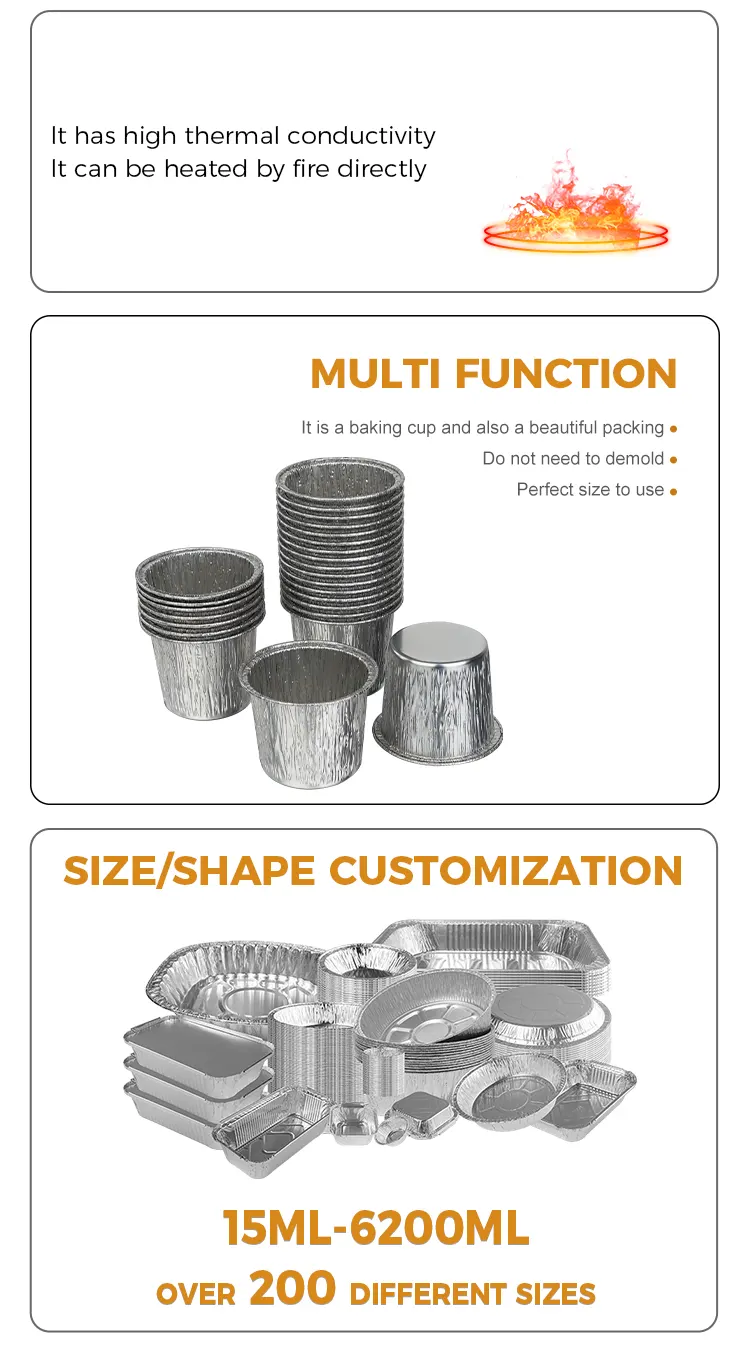 • Одноразові круглі чашки для тортів, сріблясті харчові контейнери з алюмінієвої фольгиОдноразові круглі чашки для тортів, сріблясті харчові контейнери з алюмінієвої фольги
