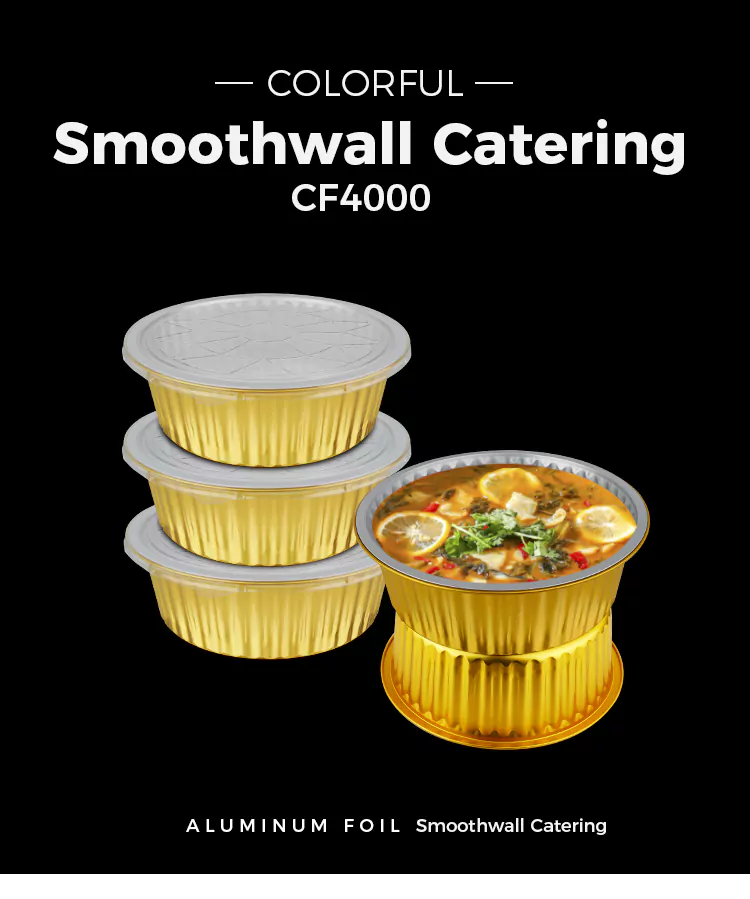Одноразові круглі контейнери з алюмінієвої фольги з золота великої ємності з алюмінієвої фольги Yunchu виготовлені з харчового основного матеріалу з алюмінієвого сплаву 8011 за допомогою прецизійної прокатки та цільного процесу формування. Зовнішня стінка контейнера гладка і може безпечно контактувати з їжею. Навіть при зберіганні кислих або жирних продуктів він може підтримувати стабільність матеріалу та не залишати залишків запаху.