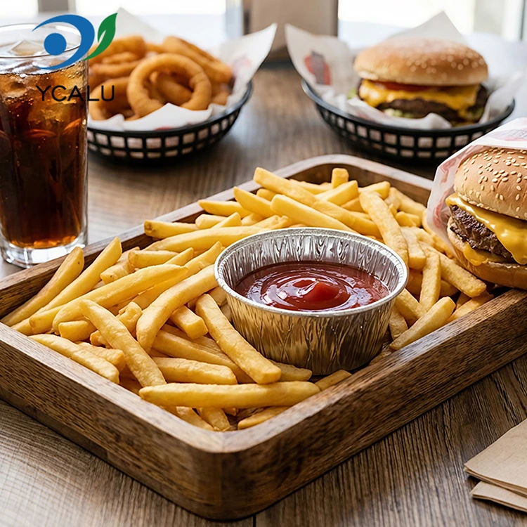 Постачальник алюмінієвої фольги Yunchu. Одноразова кругла фритюрниця для соусу. Срібний контейнер із алюмінієвої фольги. Матеріал харчової алюмінієвої фольги, без запаху, без залишків важких металів, відповідає стандартам для контакту з харчовими продуктами, має високу чистоту та стабільні хімічні властивості. Навіть якщо його наповнити кислими соусами і нагріти при високій температурі, він не буде виділяти шкідливі речовини, і ви зможете почуватися в повній безпеці при прямому контакті з їжею. Продукт пройшов сертифікацію FDA для харчових продуктів і суворо відповідає стандартам FDA 21 CFR. Після професійного тестування на міграцію та виявлення важких металів вміст шкідливих речовин, таких як свинець і кадмій, значно нижчий від порогу безпеки, і кваліфікація завершена. Будь то для домашнього чи комерційного використання, ви можете спокійно вибрати. Використовуйте його, щоб порціонувати соуси для маринування м’яса, заправки для салатів для овочів і страви з оцтом для умочення пельменів. Порції ідеальні, без марних витрат. Він також може уникнути передачі запаху, і його можна акуратно зберігати в холодильнику, не займаючи місця. Торговці їжею на винос використовують його для зберігання соусів, які закриваються та не протікають, і доставляються клієнтам чистими. Будь то кетчуп, солодкий соус чилі чи густий кунжутний соус, ви не будете соромитися витоку та забруднення їжі. Навіть для пікніків на відкритому повітрі та кемпінгу ви можете взяти з собою кілька і використовувати їх для зберігання соусів. Він легкий і не займає місця. Ви можете викинути його відразу після використання. Вам не потрібно носити купу брудної тари додому. Це в основному про легкість і безпроблемність.