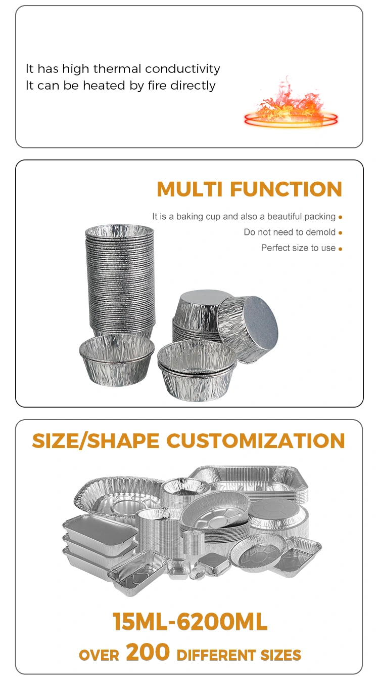 Одноразова кругла аерофритюрниця з алюмінієвої фольги постачальника Yunchu. Срібний контейнер із алюмінієвої фольги. Срібляста алюмінієва фольга має товсту текстуру, її важко пошкодити чи деформувати. Навіть якщо він містить густі соуси та інгредієнти для супу, його можна міцно тримати, не протікаючи та не зруйнуючись. Краї були посилені та притиснуті, тому вони гладкі на дотик, не дряпають ваші руки та безпечніші у використанні. Одноразовий дизайн, викидайте після використання, що позбавить вас від чищення контейнера. Це може не тільки підвищити ефективність, але й зберегти навколишнє середовище чистим і охайним у таких сценаріях, як упаковка на винос, магазини громадського харчування, кемпінги та пікніки. Крім того, алюмінієва фольга підлягає вторинній переробці, є екологічно чистою та екологічно чистою, і вона не завдасть великого шкоди навколишньому середовищу, якщо її викинути після використання, беручи до уваги зручність і захист навколишнього середовища.