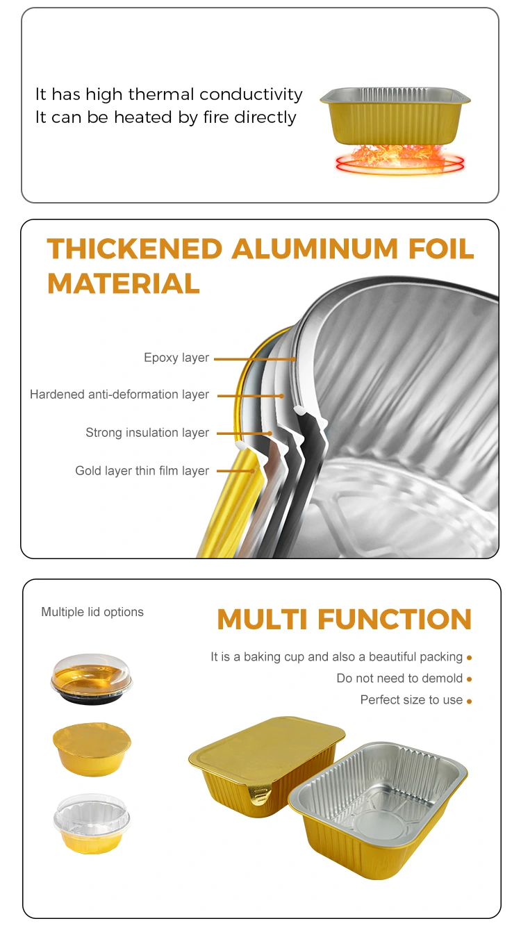 Алюмінієва фольга з алюмінієвою фольгою з алюмінієвої фольги з алюмінієвою фольгою для гратів, придатних для одиночної порції запеченого рису або запеченої макарони та інших страв для упаковки, упаковки для обіду та вивезення, заздалегідь виготовлених страв може вибирати упаковки, цей однозначний квадратний алюмінієвий алюмінієвий алюмінієвий контейнери-з міжнародними кордотами з алюмінією, а також бездивованою їжею. За допомогою теплової ущільнювальної плівки вона може досягти ефективної ущільнення та ефективно запобігти витоку супу, який підходить для автоматичного ущільнювального обладнання. Поверхня контейнера гладка і плоска, що легко позначити, і вона красива і щедра, що допомагає покращити зображення бренду. Він стійкий до високих та низьких температур, може використовуватися в температурному діапазоні від -20 ° C до 250 ° C і підтримує різноманітні методи нагрівання, такі як охолодження, випічка та пропарювання. Матеріал алюмінієвої фольги на 100% перероблений та стійкий.