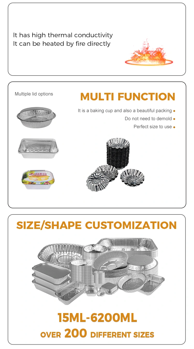 Продукти з алюмінієвої фольги з фольги, безпечний та нетоксичний, виготовлений з алюмінієвого харчового матеріалу з алюмінієвою фольгою, з хорошою теплопровідністю, безпечними та нетоксичними використанням багатих і різноманітними, так що ви можете використовувати його більш легко, прості для усунення цвілі при використанні високої температури, після того, як готовий продукт завершено, простий для видалення фільму, не вистачає тиску, не пошкоджуйте, скажіть, що не має на увазі, не враховує тиск, що не має права на те, що він не має на увазі, не враховує тиск, що підтримує, не має на увазі, що не має права на оплату тиску. До побачення з проблемою промивання горщика і легко захистити горщик, ізолювати плями з маслом після використання, не потрібно очистити, гладке дно нелегко спалювати і прилипнути до дна, антипригарна їжа легко готувати, дно гладке, воно може протистояти -20 ° C ~ 300 ° C, можна нагріти відкритим вогнем, а форма нагрівається.