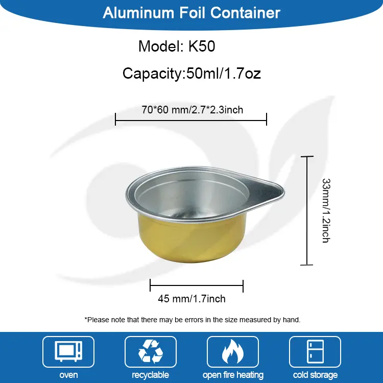 Yunchu Постачальник алюмінієвої фольги K50 Термозварювання без силіконової герметизації Порожня кавова капсула Верх: 70*60 мм, 2,7*2,3 дюйма, Основа: 45 мм, 1,7 дюйма, Висота: 33 мм 1,2 дюйма, може вмістити 50 мл їжі 1,9 унції, можна застосовувати до всіх кавоварок Nespresso (nespresso), упакований порошок еспресо або промитий азотом для подовження терміну зберігання.