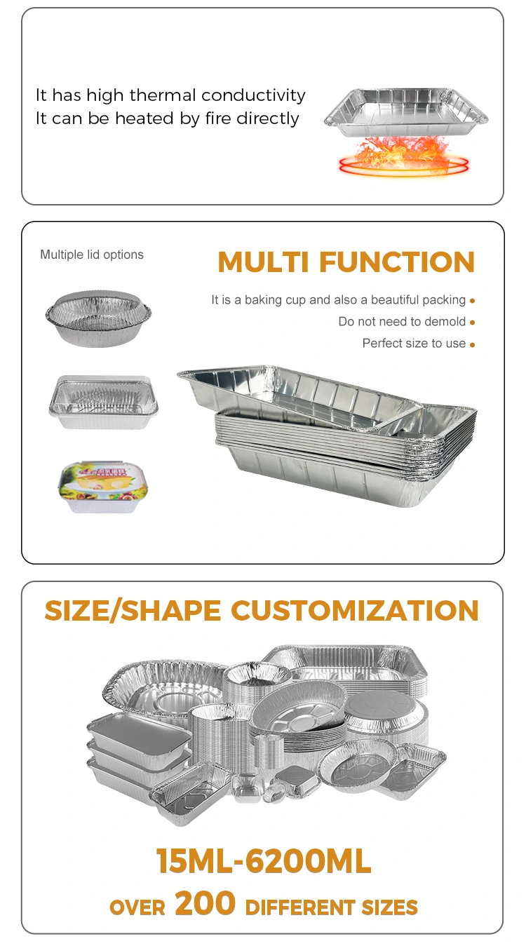 Алюмінієва фольга з алюмінієвою фольгою yunchu yunchu великі контейнери для алюмінієвої фольги з алюмінієвою фольгою на грилі на грилі підходять для всіх видів великого обладнання для випічки, наприклад, випічки печей, реп -коробки та грилі з барбекю, і т. і нелегко спалити, але також може безпосередньо зв’язатися з відкритим полум'ям. Продукт прийняв відповідні національні сертифікати для забезпечення безпечного використання. Крім того, він має чудову тепловідповідач і може залишатися стабільною при високих температурах, непросто деформований або тріск. Пройдіть суворі внутрішні випробування, щоб забезпечити безпеку та надійність продукту.