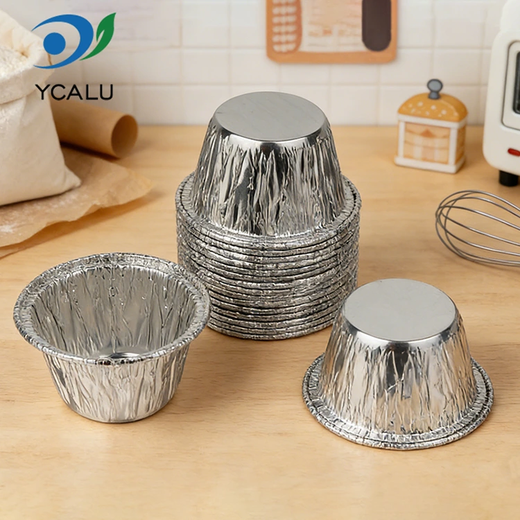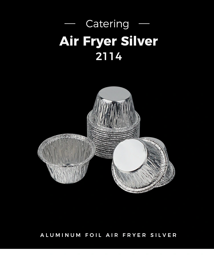 • Одноразова невелика кругла фритюрниця для тістечок, сріблясті харчові контейнери з алюмінієвої фольгиОдноразова невелика кругла фритюрниця для тістечок, сріблясті харчові контейнери з алюмінієвої фольги