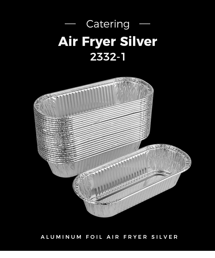 • Овальна повітряна фритюрниця Випічка срібних контейнерів з алюмінієвої фольгиОвальна повітряна фритюрниця Випічка срібних контейнерів з алюмінієвої фольги