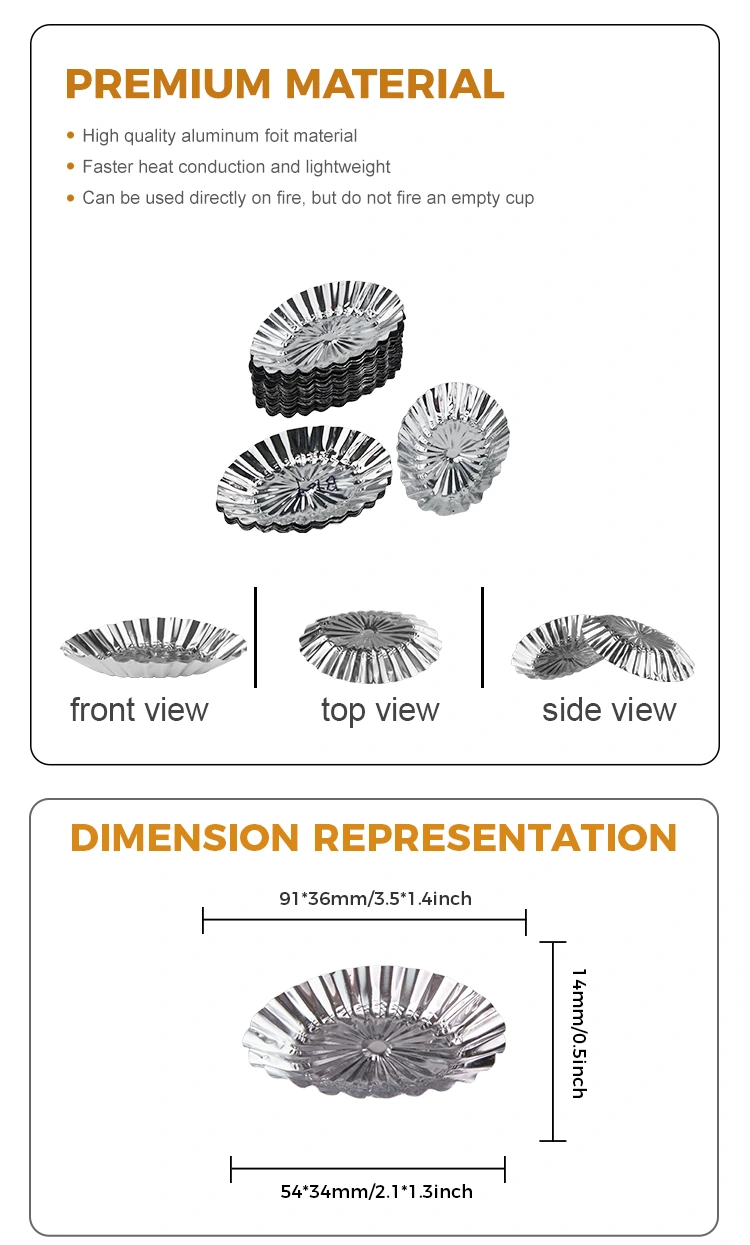 Алюмінієва фольга з алюмінієвою фольгою овального мереживного заварного крему Тарт -срібний контейнер з алюмінієвою фольгою є хорошим партнером для випічки, як у формі, так і як упаковка. Він виготовлений з потовщеного і твердого матеріалу, який непросто деформується і має сильну стійкість до тиску, тому ви можете попрощатися з проблемою промивання горщика і легко захистити горщик. Ізоляту мастила, не потрібно мити після використання, гладке дно нелегко скочувати і дотримуватися дна, не прилипає до їжі, легко готувати. Дно гладке, так що ви можете використовувати його з більшою кількістю спокою, простий у звільненні форми при використанні її при високій температурі, простий у випуску форми після завершення готового продукту, не прилипає до дна, не пошкоджує форму. Потовщений і твердий матеріал, сильна стійкість до тиску, прощайтеся з неприємностями промивання горщиків і легко захищає горщик. Ізоляту мастила, не потрібно мити після використання, гладке дно нелегко скочувати і дотримуватися дна, не прилипає до їжі, легко готувати. Дно гладке, воно може протистояти від -20 ° C до 300 ° C, його можна нагрівати над відкритим полум'ям, а форма нагрівається рівномірно.