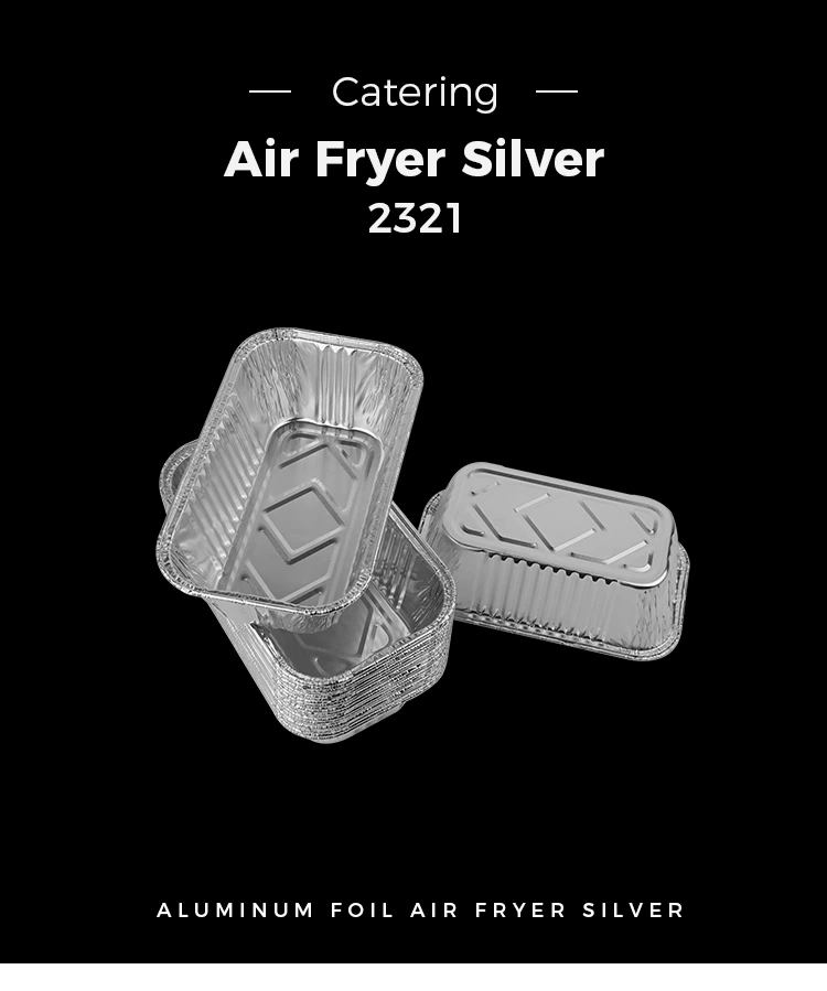 • Прямокутна повітряна фритюрниця Гриль сріблясті алюмінієві контейнериПрямокутна повітряна фритюрниця Гриль сріблясті алюмінієві контейнери