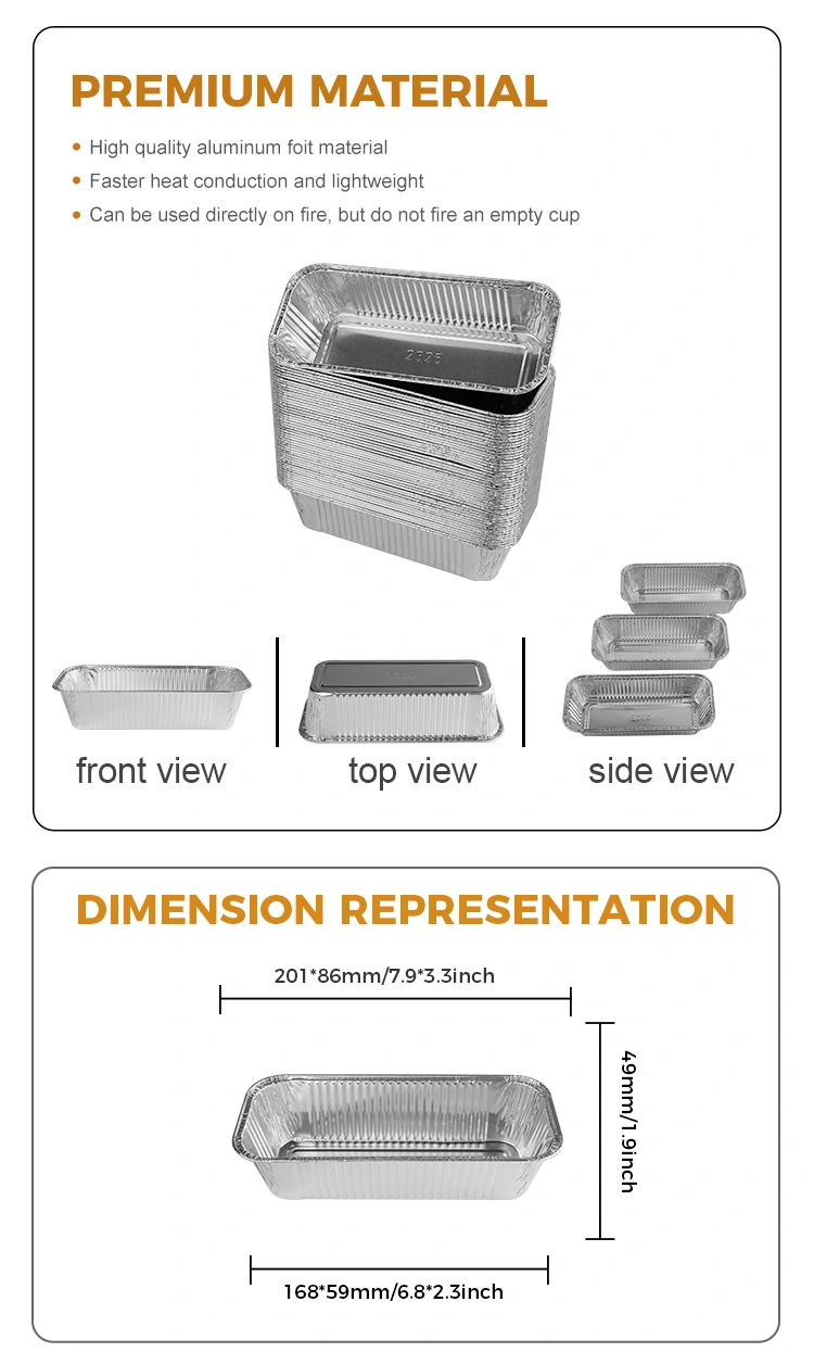 Постачальник алюмінієвої фольги на Юнху Модель 2325 Прямокутне контейнери з алюмінієвою фольгою з алюмінієвою фольгою з високоякісним матеріалом алюмінієвої фольги потовщений і не легко зламати, і його можна нагрівати над відкритим полум'ям, цей контейнер з алюмінієвою фольгою не тільки красива на вигляд, але й дуже практична. Він може витримати високотемпературну випічку, непросто спалювати або деформувати дно, а конструкція дна також красива і елегантна, що може ефективно запобігти прилипання їжі. Крім того, його високостороння конструкція робить комбінацію алюмінієвої фольги більш стійкою та легшою у використанні. Незалежно від специфікації розміру ви вибрали, цей контейнер з алюмінієвою фольгою ідеально адаптується до різних розмірів горщиків, задовольняючи ваші різноманітні потреби. Для того, щоб більше споживачів користуватися високоякісними продуктами та послугами, ми надаємо різноманітні специфікації розміру на вибір та можемо налаштувати друк шаблонів відповідно до ваших потреб для задоволення персоналізованих потреб. З одним MOQ лише 1000 штук процес покупки простий і швидкий, а продуктивність витрат надзвичайно висока. Якщо у вас є якісь питання або вам потрібно подальше розуміння наших продуктів, будь ласка, не соромтеся зв’язатися з нами, ми будемо раді вам обслуговувати.