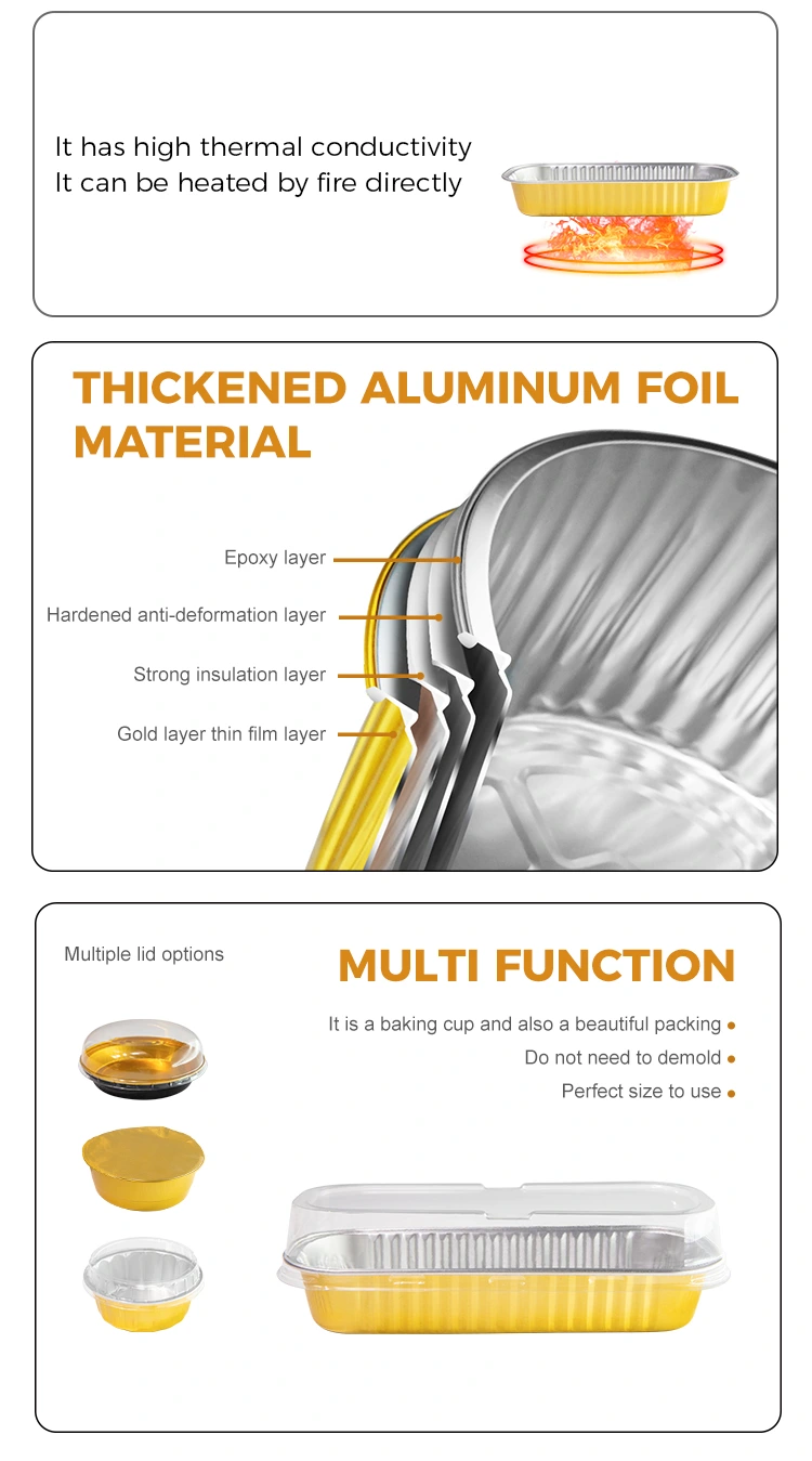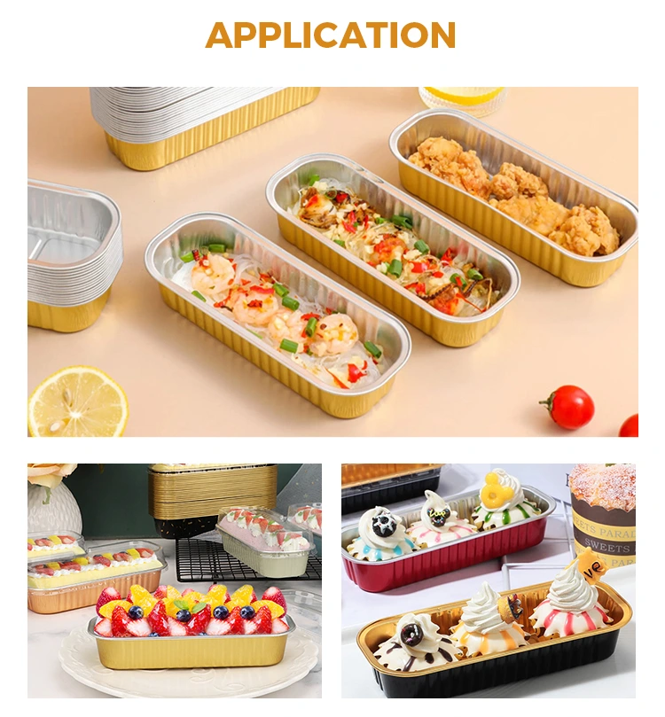 Yunchu aluminum foil supplierRectangular baking cake Smoothwall Aluminum Foil Containers is made of 8011 food-grade aluminum foil material, choose to store in the refrigerator with lid, aluminum foil lid and PET fully transparent plastic lid, cannot be used in air fryer, oven and other equipment, universal design air fryer, oven, steamer can be used with various equipment, can be reused hygienic and environmentally дружній, увігнута та опукла дизайн внизу не тільки підвищує стабільність продукту, але й відіграє роль у проти ковзання; Жорсткі сили з боків підвищують міцність продукту, що робить його більш міцним, і, крім того, цей прямокутний легкий стінний контейнер з алюмінієвою фольгою пропонує різноманітні кольори на вибір, що дозволяє налаштувати його відповідно до ваших переваг.