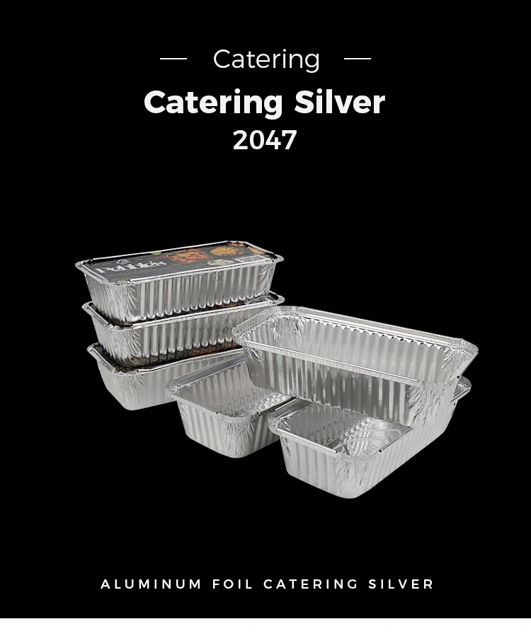 • Прямокутний барбекю потовщений сріблястий алюмінієвий контейнериПрямокутний барбекю потовщений сріблястий алюмінієвий контейнери