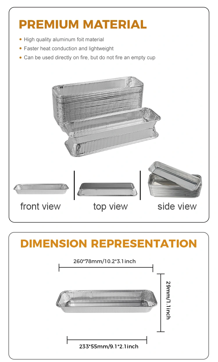 Yunchu aluminum foil supplier's Rectangular bread air fryer Silver Aluminum Foil Containers, the tooth mouth edge sealing is tight, the curled edge design is strong and durable, the geometric shading is not easy to deform, thickening and deepening high temperature heating resistance, non-toxic and odorless, uniform thermal conductivity, thickened aluminum foil high temperature resistance, oil and anti-sticking, can control the deliciousness of їжа. Різноманітні функції, смачні не є самотніми, інгредієнти змінюються, різноманітні технічні характеристики відповідають різним потребам, для задоволення ваших потреб доступні кілька стилів, інгредієнти змінюються, а різноманітні технічні характеристики задовольняють різні потреби.