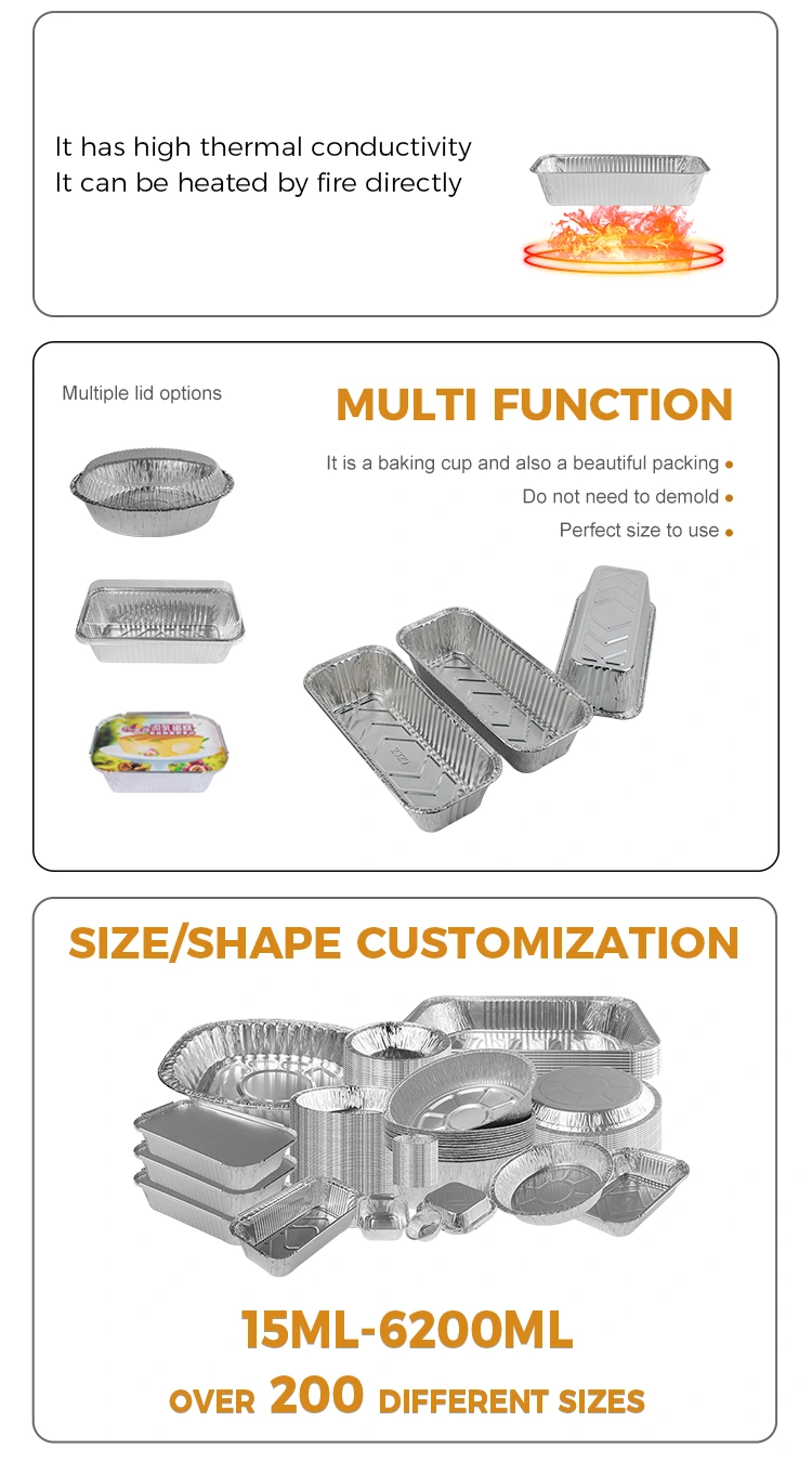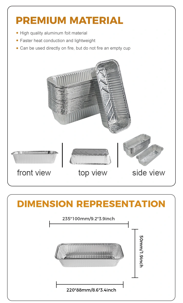 Цей контейнер не тільки стійкий до тепла та стійкий до нафти, але й дуже простий у спекі, що робить його особливо придатним для використання у фритюрниці та іншому обладнанні. Просто покладіть в неї їжу або суп, використовуючи її, не турбуючись про те, що вона висихає. Для домашніх користувачів він ще чистий і зручний, з немитним дизайном, що робить очищення легким і швидким. Прямокутна контейнер з алюмінієвої фольги срібла - це незамінний помічник на вашій кухні. Будь то для повсякденної кулінарії чи особливих випадків, він пропонує ідеальне рішення. Приходьте до покупки, щоб зробити ваше кулінарне життя більш зручним та смачним!