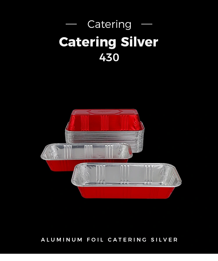 • Прямокутні червоні хлібобулочні кейтерингові срібні контейнери з алюмінієвої фольгиПрямокутні червоні хлібобулочні кейтерингові срібні контейнери з алюмінієвої фольги