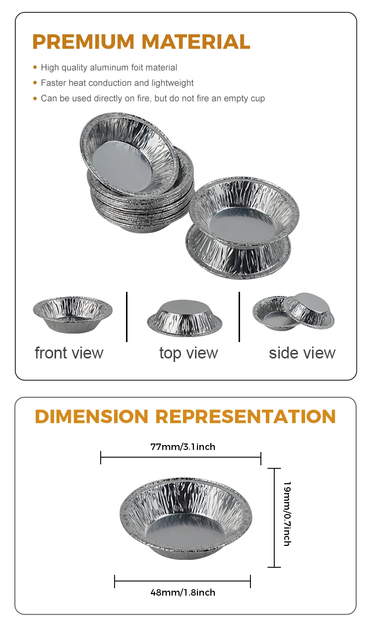 • Круглий яєчний пиріг для закусок срібляста алюмінієва фольга харчова контейнерКруглий яєчний пиріг для закусок срібляста алюмінієва фольга харчова контейнер