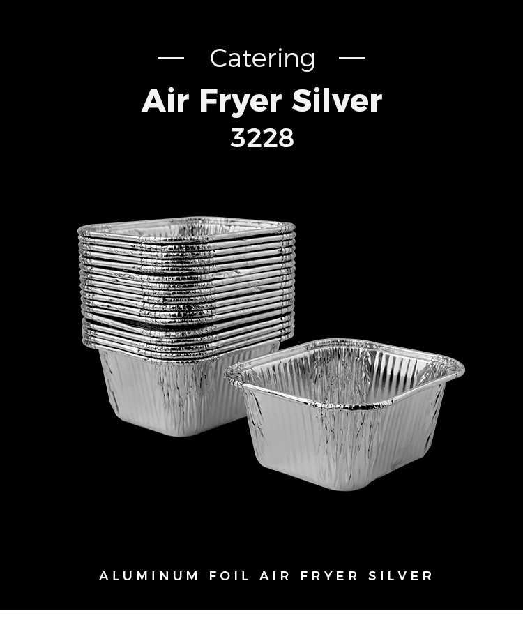 • Квадратна випічка повітряного фритюрниці Сріблясті контейнери з алюмінієвої фольгиКвадратна випічка повітряного фритюрниці Сріблясті контейнери з алюмінієвої фольги