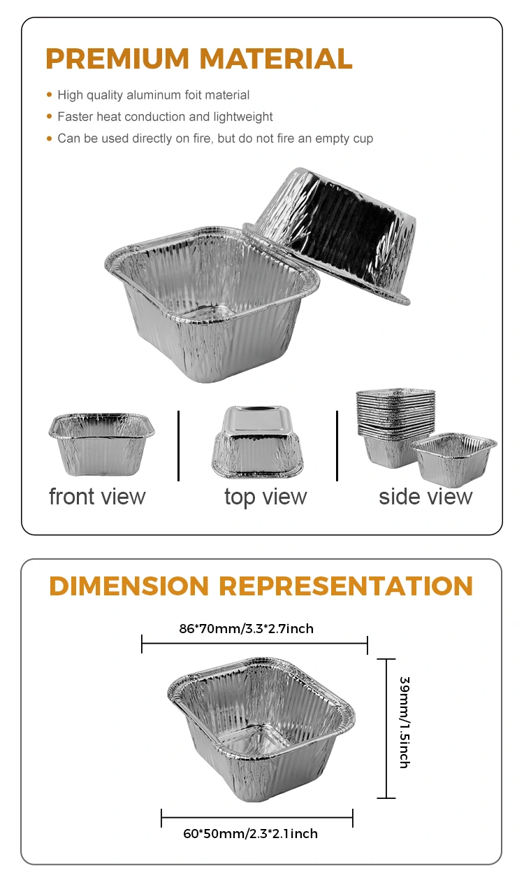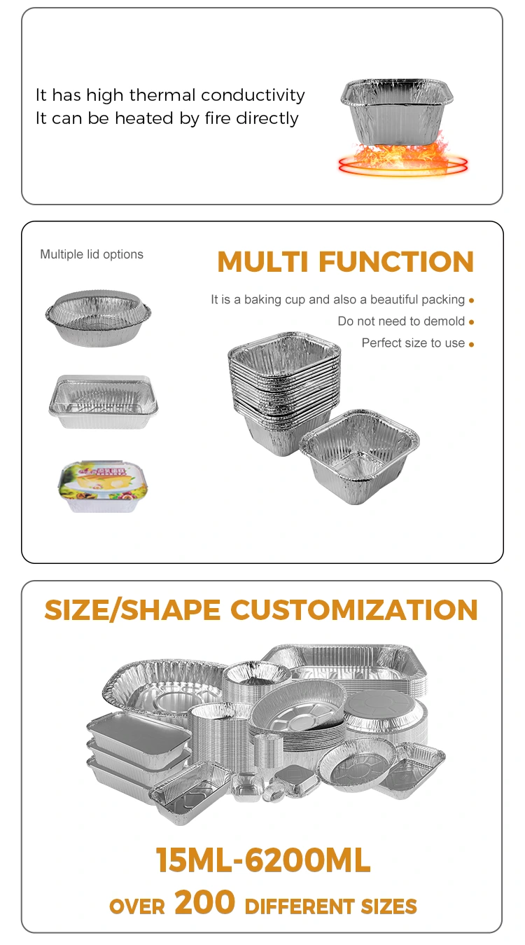 Квадратна контейнер для срібної фольги з фритюрниці для випічки, що надається постачальником алюмінієвої фольги Юнгу, підходить для різних випадків, включаючи фритюрниці, невеликі випічки, винос харчування та кафетерії. Він не тільки підходить для виготовлення устриць вермішель, десертних червоних квасолів, курячих крильців на грилі та тортів з парами, але також може бути поєднаний з різноманітними інгредієнтами і широко використовується у всіх аспектах промисловості громадського харчування. Контейнер оснащений антипригарною та анти-паличковою конструкцією, з увігнутою та опуклою нижньою структурою, що полегшує їжу випускати цвіль і підтримувати кращий вигляд. Незалежно від того, чи це на грилі чи пропарювання над відкритим полум'ям, ви можете легко впоратися з ним, не обмежуючись. Його матеріал міцний і довговічний, що робить його придатним для використання не тільки в печах та фритюрниці, але і у відкритих полум'яних грилях або пароплавах, що зручно і швидко. Крім того, поверхня контейнера є гладкою і плоскою, а краї закруглені і не просто подряпати руки, і навіть якщо є складки, це не вплине на зчеплення. Ми пропонуємо різноманітні форми PAN, включаючи квадратні, круглі та серцеподібні стилі, щоб задовольнити ваші різноманітні потреби. Якщо ви зацікавлені, будь ласка, не соромтеся проконсультуватися з нашими працівниками обслуговування клієнтів для отримання більш детальної інформації.